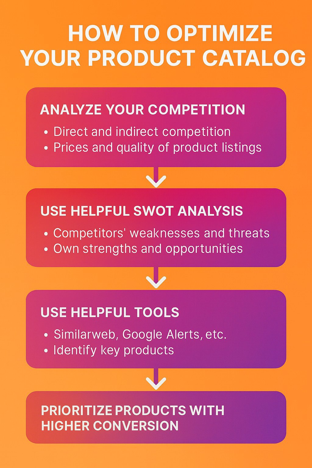 Less can be more: Reducing from 8,000 references to 200 high-converting products may be a strategic decision. In fact, an overly broad catalog can work against you and reduce visibility for your most competitive products.