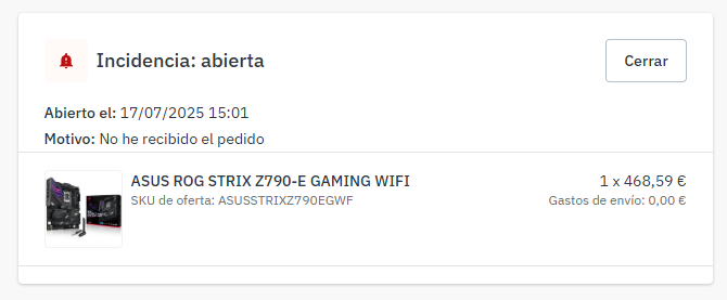 ¿Cómo podemos saber el motivo de la incidencia? 17 de julio de 2025 14:51 Actualización Consultando el panel del pedido de la plataforma: