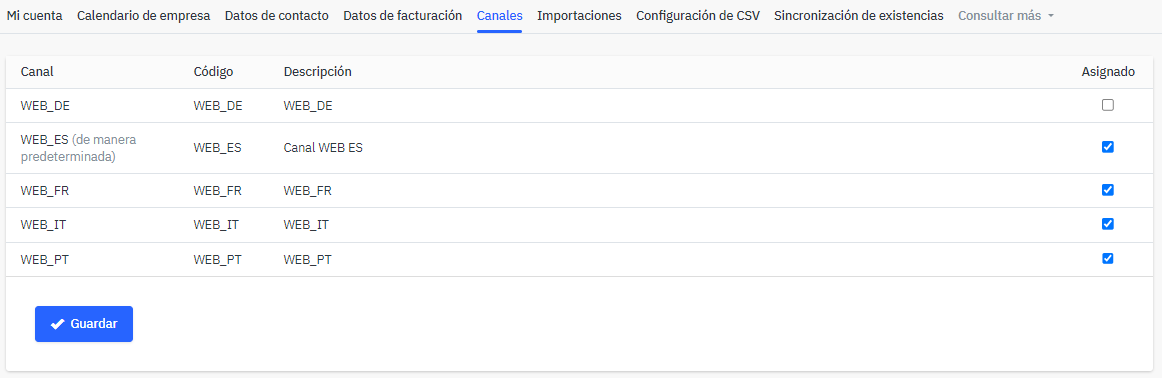Desde la configuración de canales de venta, podéis activar o desactivar vuestra presencia en los diferentes marketplaces internacionales de PcComponentes, como pccomponentes.com (España), pccomponentes.fr (Francia) o pccomponentes.it (Italia), entre otros.